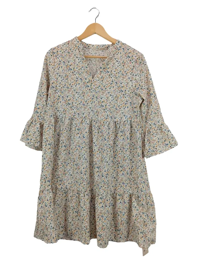 Damen Freizeitkleid Blumenmuster Rüschen Midikleid Mehrfarbig S