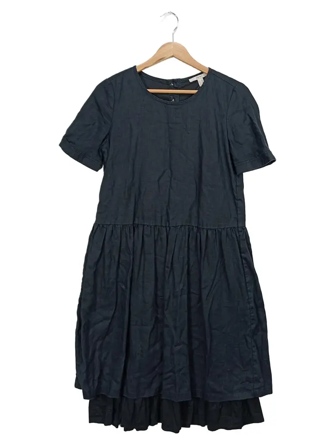 Damen Freizeitkleid Gr. 32/XXS Blau Klassisch Baumwolle Kurzarm