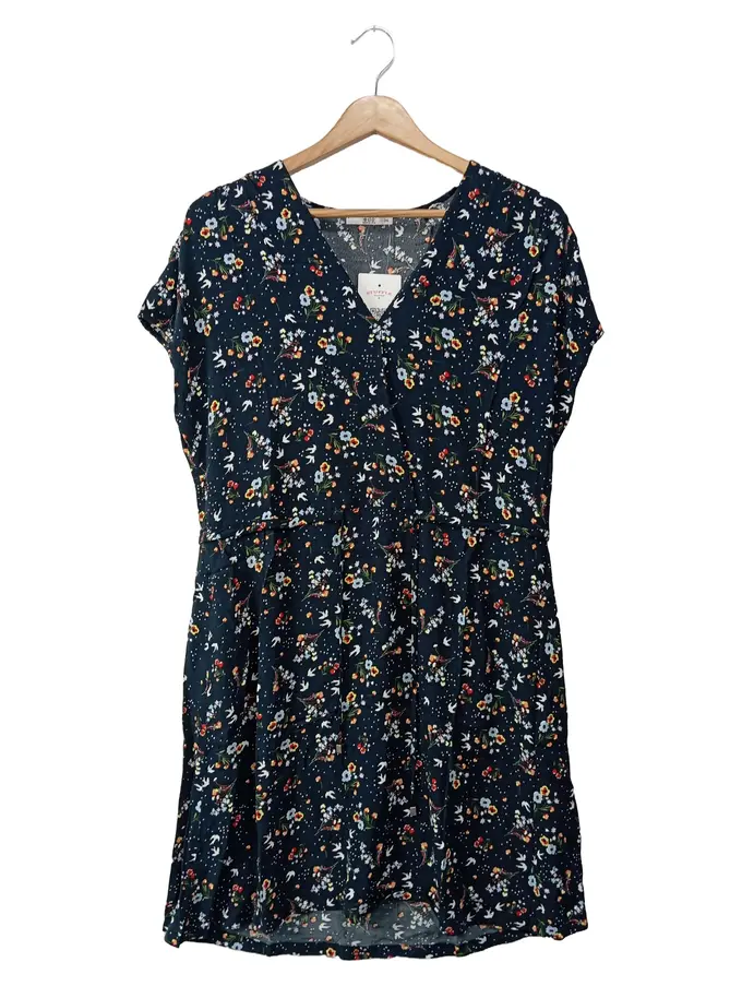 Damen Freizeitkleid Gr. 34/XS Blau Blumenmuster Viskose Bohemian