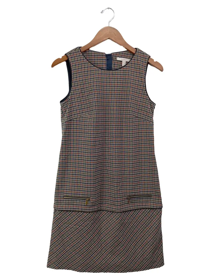 Damen Freizeitkleid Gr. 34/XS Kariert Mehrfarbig Ärmellos Elegant