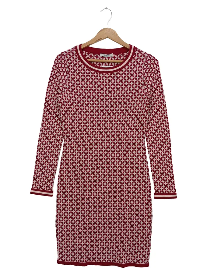 Damen Freizeitkleid Gr. 34/XS Rot Weiß Grafisch Strickkleid