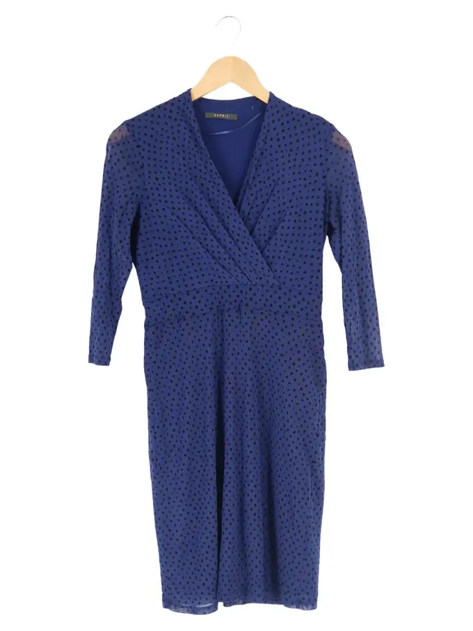 Damen Freizeitkleid Gr. 36/S Blau Punkte Elegant Wickeloptik