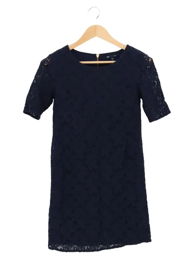 Damen Freizeitkleid Gr. 36/S Blau Spitze Kurzarm Sommerkleid