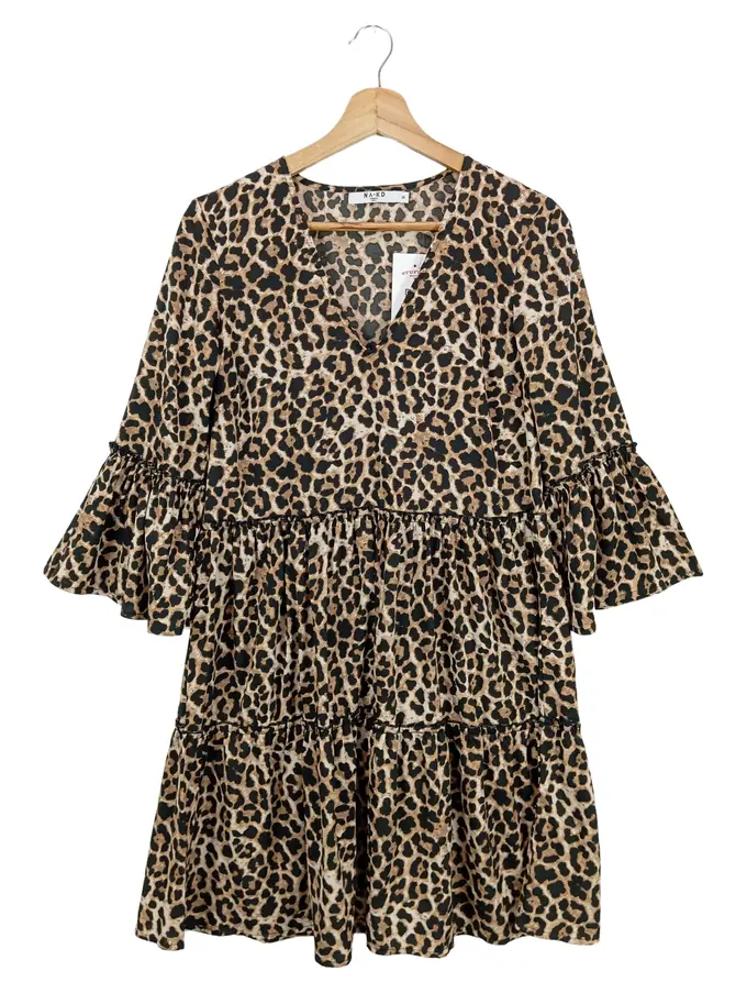 Damen Freizeitkleid Gr. 36/S Braun Leo-Print Bohemian Streetwear