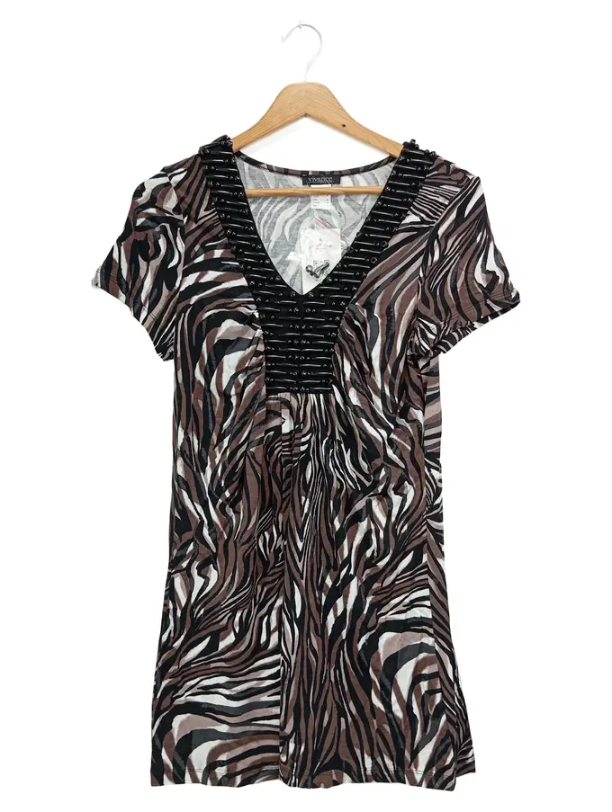 Damen Freizeitkleid Gr. 36/S Braun Zebra Bohemian Viskose Minikleid