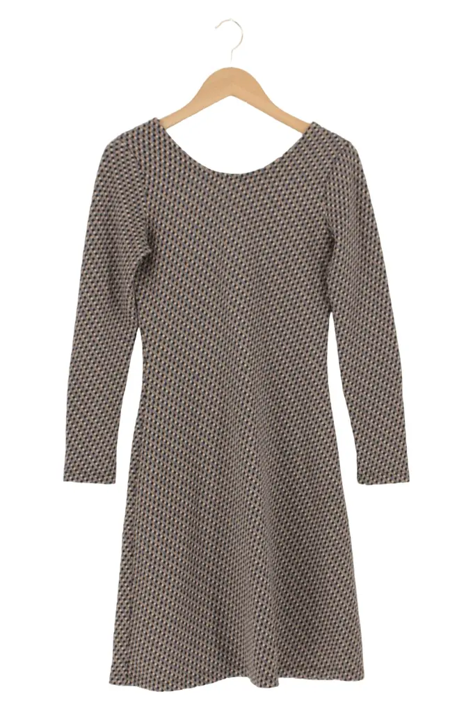Damen Freizeitkleid Gr. 36/S Grau Grafisch Vintage Midikleid