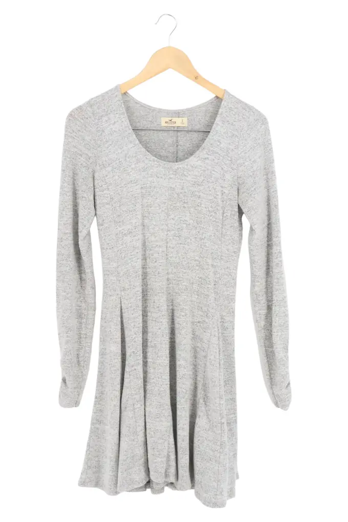 Damen Freizeitkleid Gr. 36/S Grau Meliert Casual Langarm A-Linie