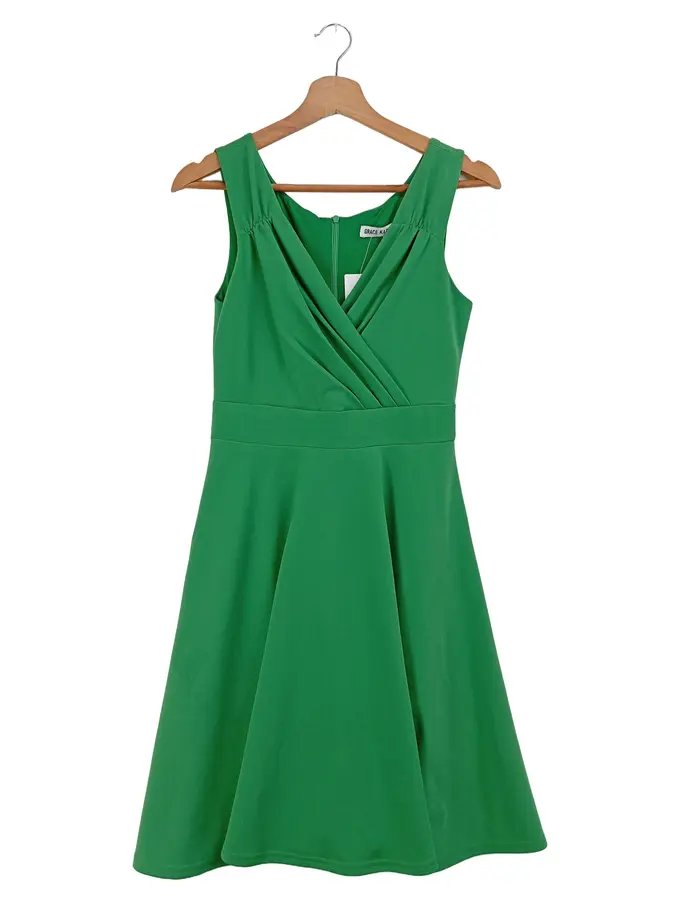 Damen Freizeitkleid Gr. 36/S Grün Elegant Vintage Midikleid