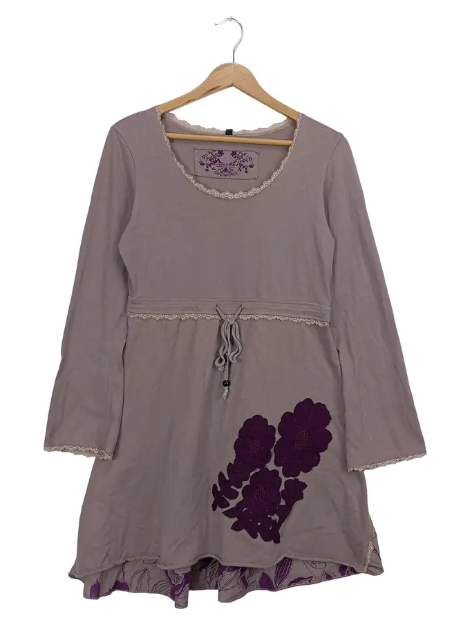 Damen Freizeitkleid Gr. 36/S Lila Baumwolle Bohemian Vintage
