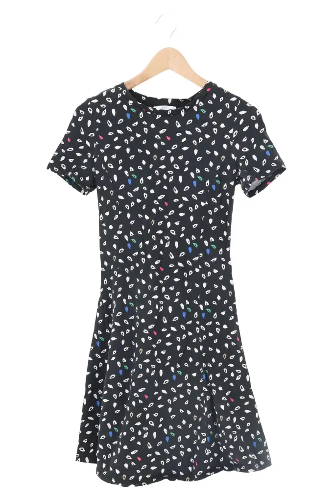 Damen Freizeitkleid Gr. 36/S Schwarz Abstrakt Casual Modern
