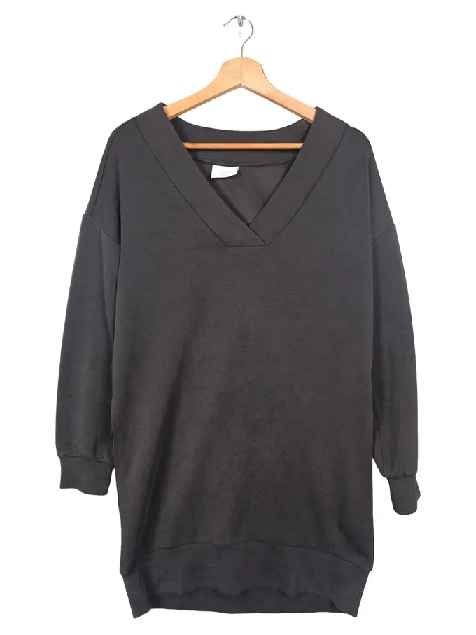 Damen Freizeitkleid Gr. 36/S Schwarz Casual Midikleid Polyester