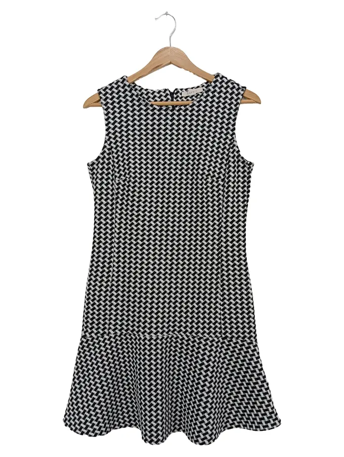 Damen Freizeitkleid Gr. 36/S Schwarz Weiß Grafisch Ärmellos
