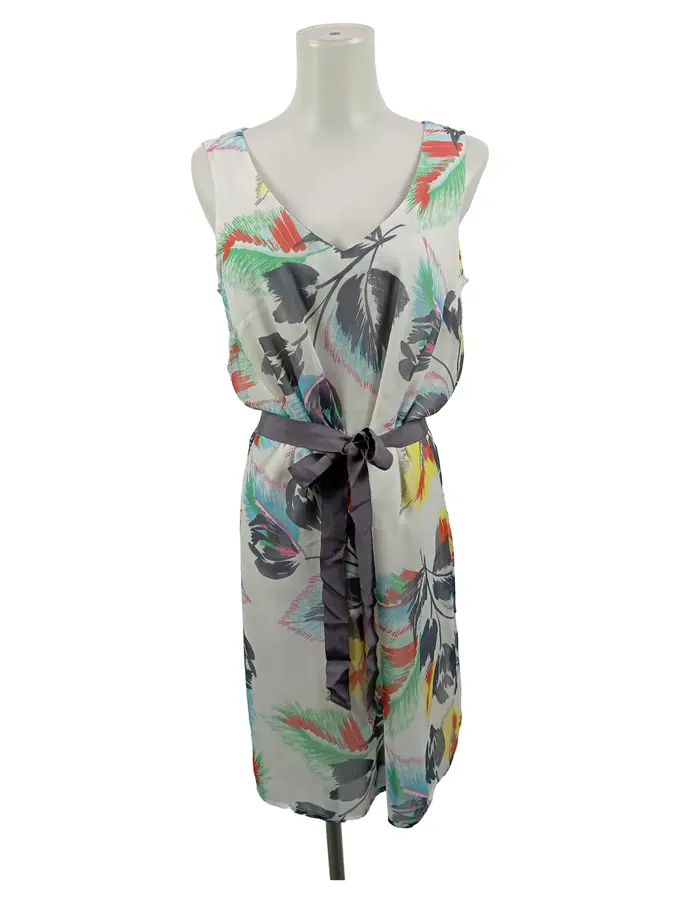 Damen Freizeitkleid Gr. 36/S Weiß Florales Muster Bohemian Sommerkleid