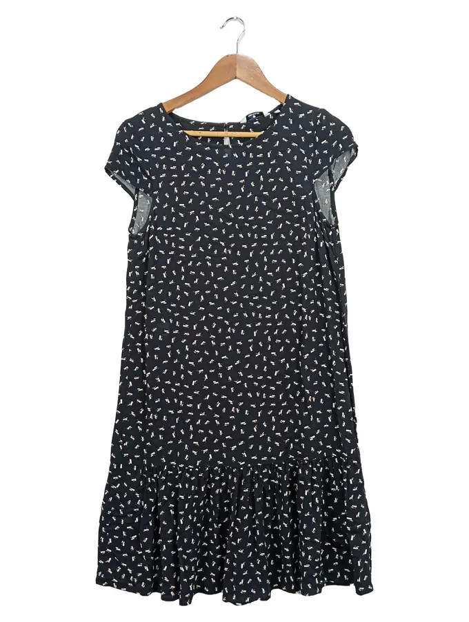 Damen Freizeitkleid Gr. 36 Schwarz Casual Grafisches Muster