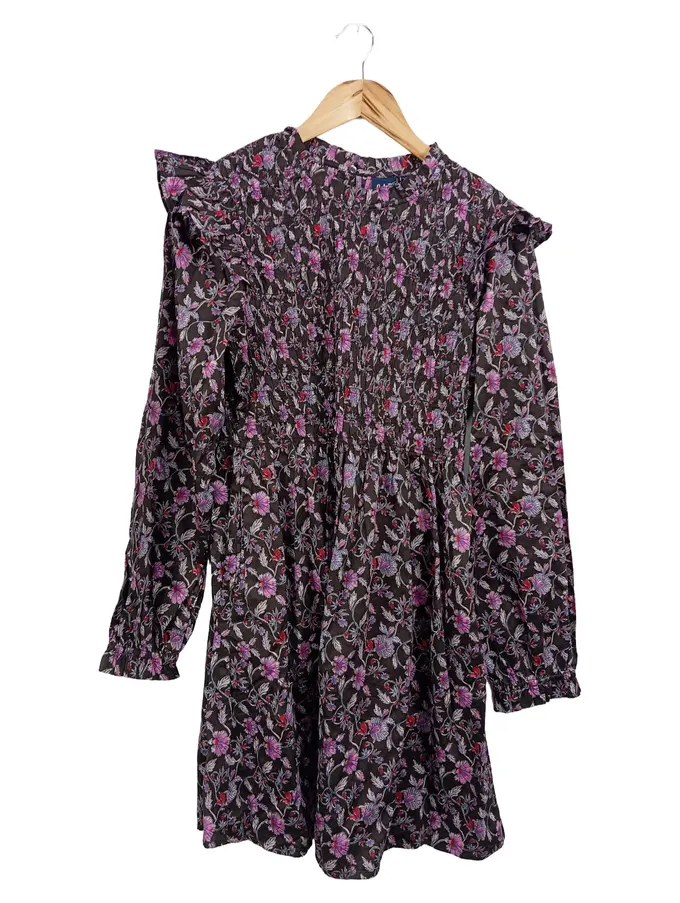 Damen Freizeitkleid Gr. 38/M Blumenmuster Rüschen Raffungen Mehrfarbig