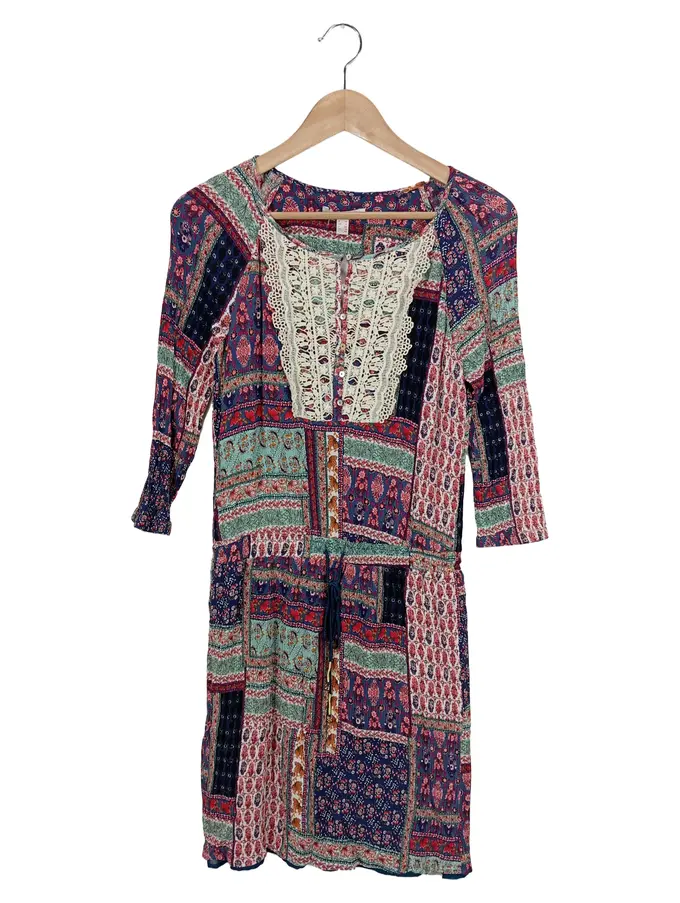 Damen Freizeitkleid Gr. 38/M Mehrfarbig Bohemian Vintage Viskose