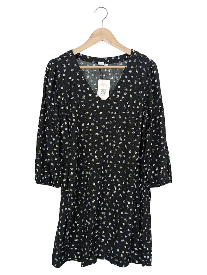 Damen Freizeitkleid Gr. 38/M Schwarz Blumenmuster Viskose Elegant