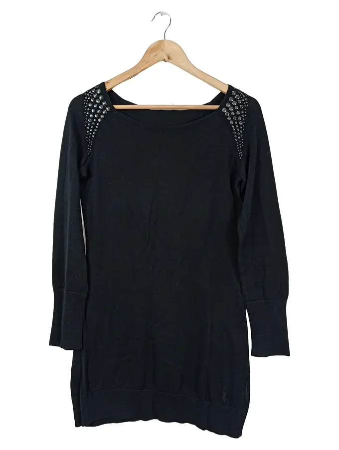 Damen Freizeitkleid Gr. 38/M Schwarz Nieten Langarm Baumwolle