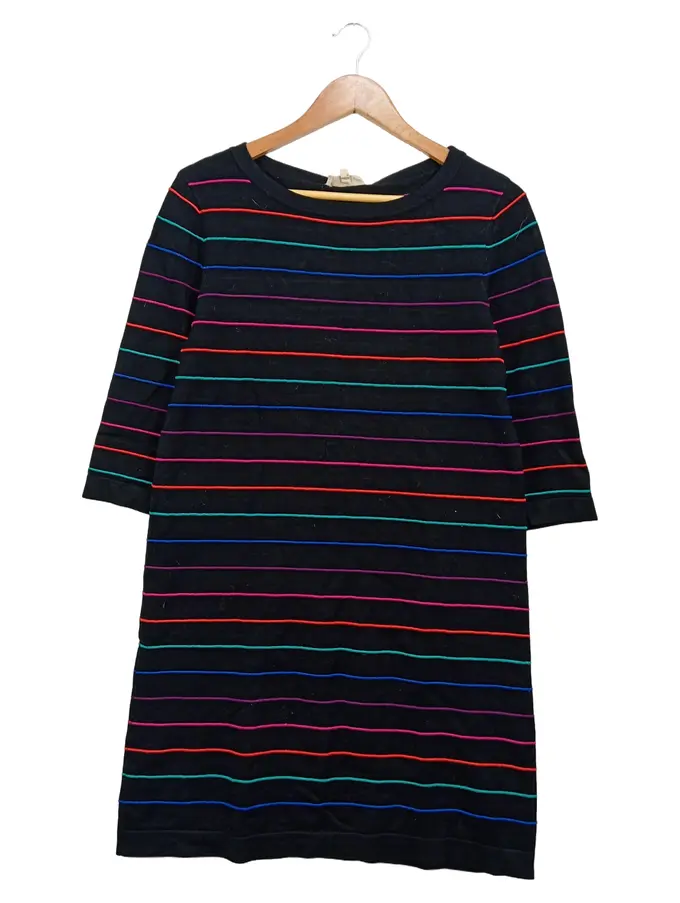 Damen Freizeitkleid Gr. 38/M UK 10 Schwarz Mehrfarbig Gestreift