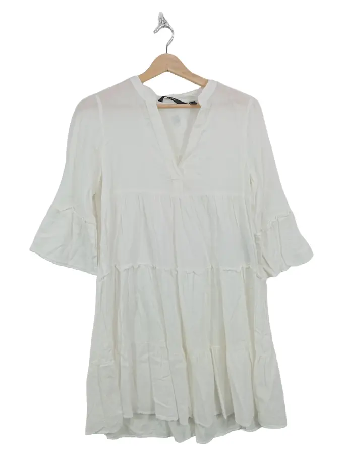 Damen Freizeitkleid Gr. 38/M Weiß Casual Baumwolle