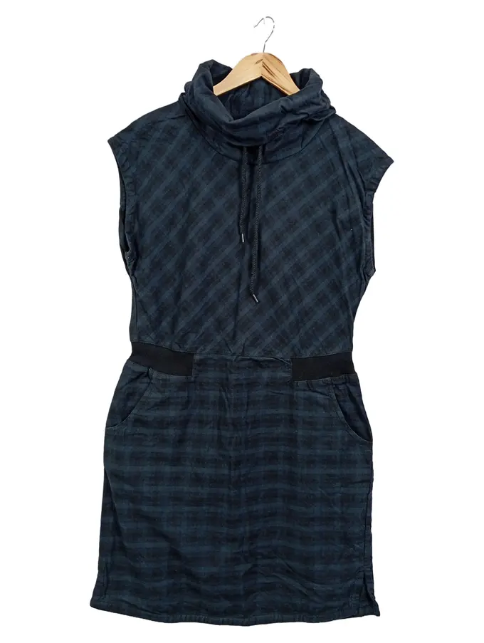 Damen Freizeitkleid Gr. 40/L Blau Kariert Casual Midikleid