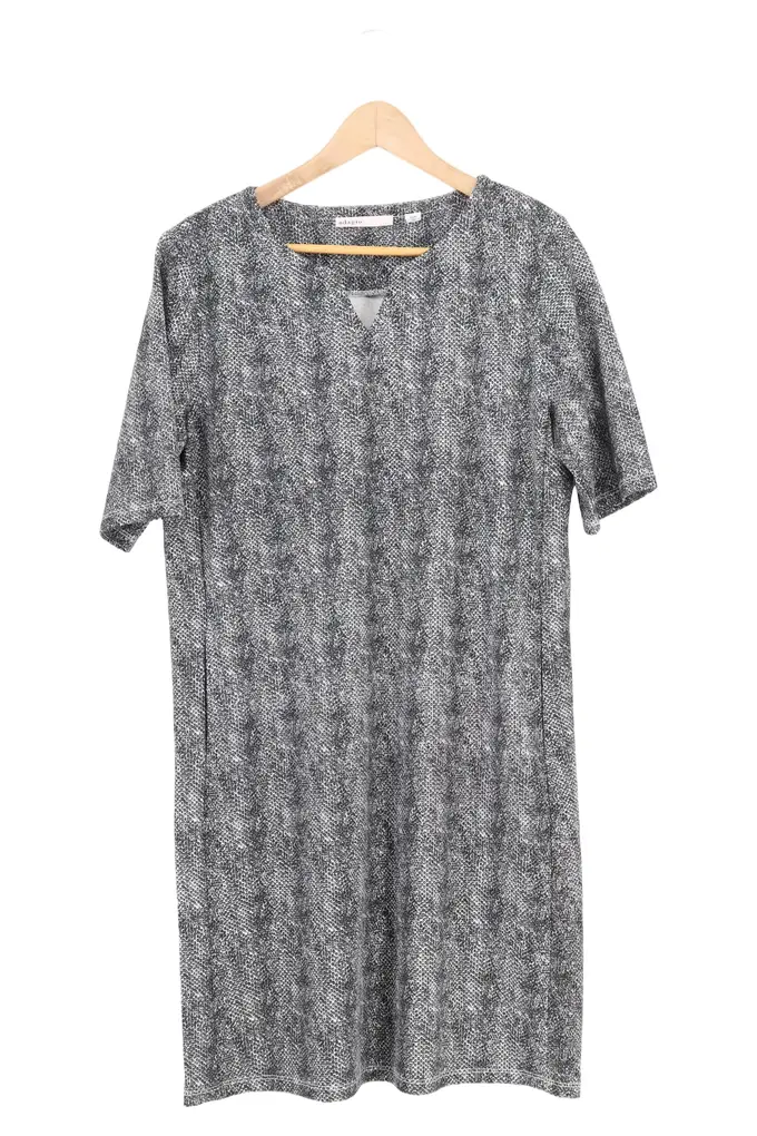 Damen Freizeitkleid Gr. 40/L Grau Meliert Kurzarm Basic Modern