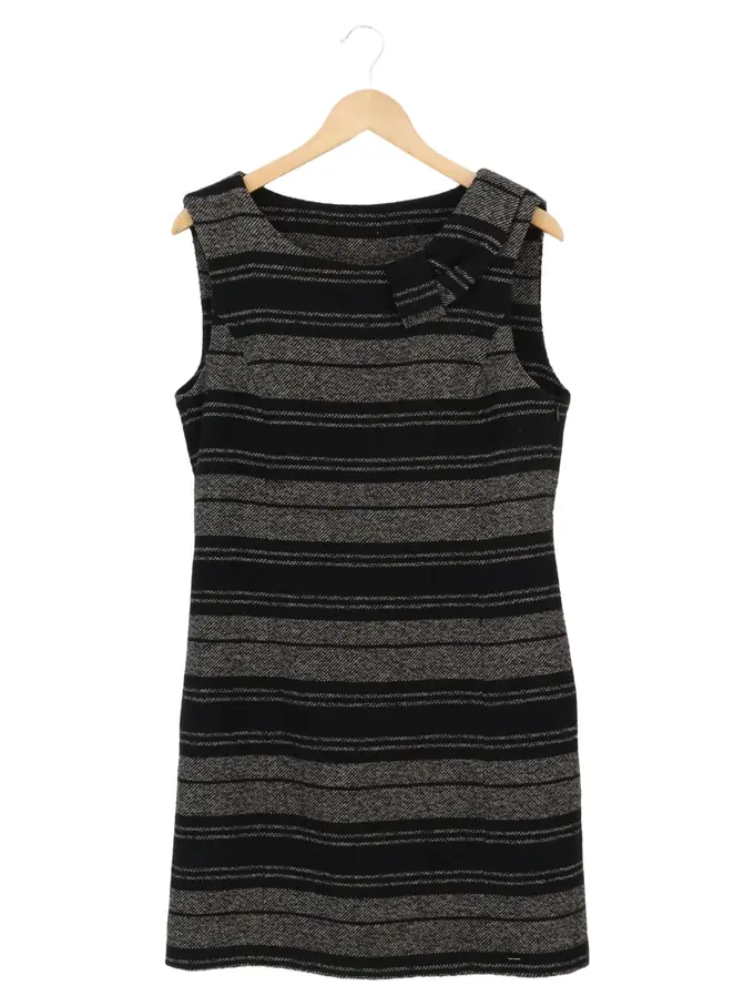 Damen Freizeitkleid Gr. 40/L Grau Schwarz Gestreift Casual Feminin