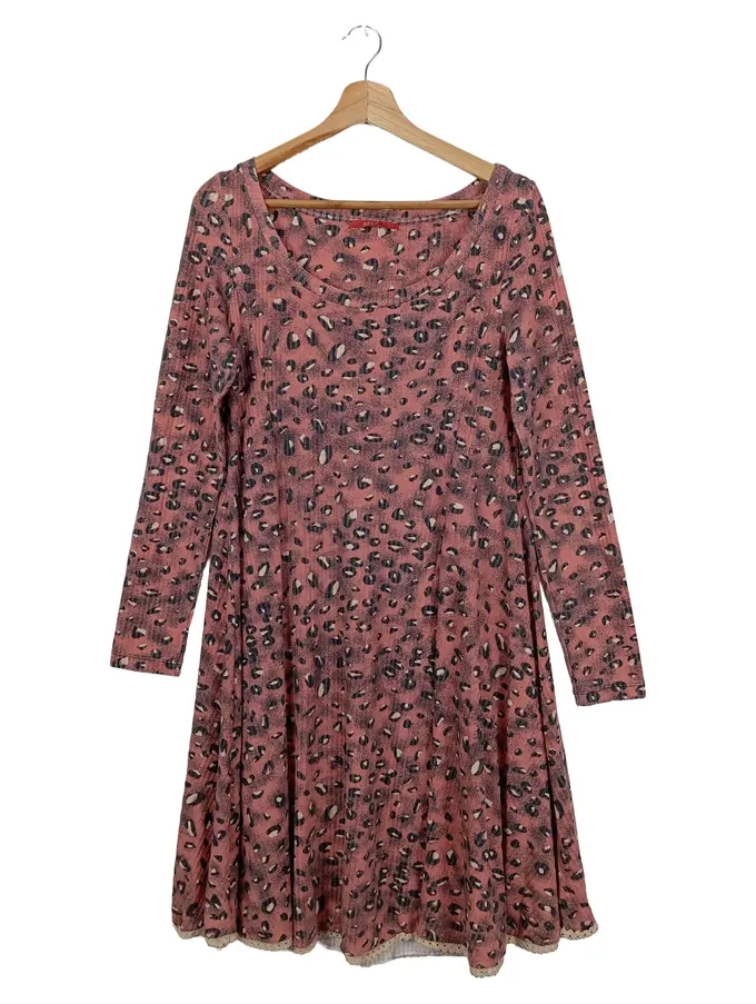Damen Freizeitkleid Gr. 40/L Rosa Tierdruck Rippstrick Midi