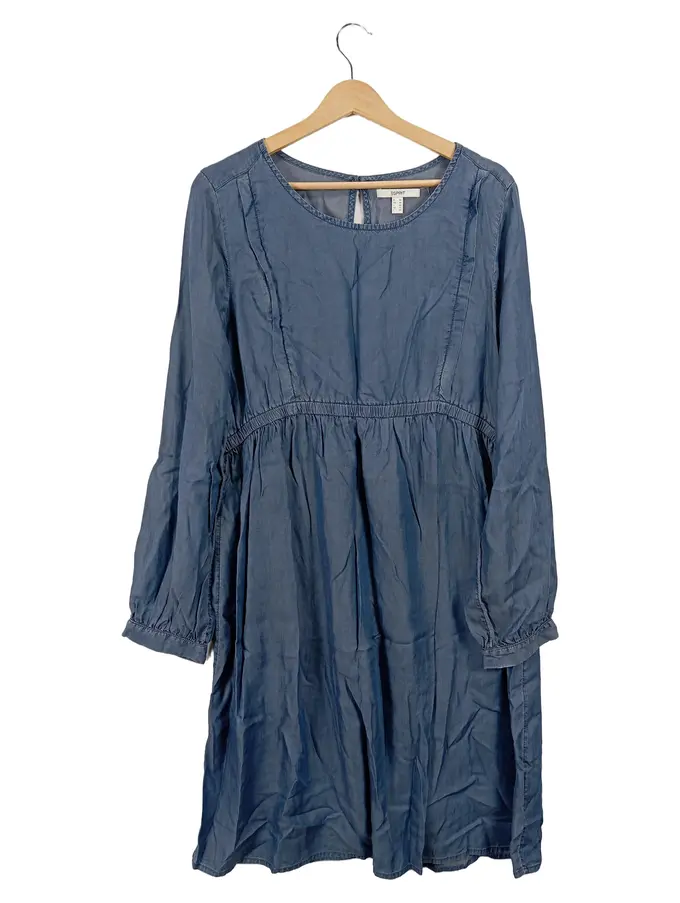 Damen Freizeitkleid Gr. 42/XL Blau Viskose Tunika Langarm