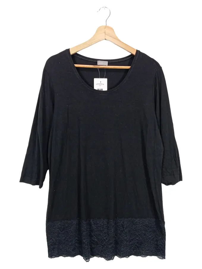 Damen Freizeitkleid Gr. 44/XXL Schwarz Elegant Viskose Spitze