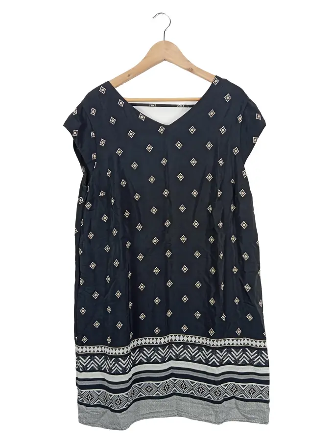 Damen Freizeitkleid Gr. 44 XXL Schwarz Grafisch Viskose Casual