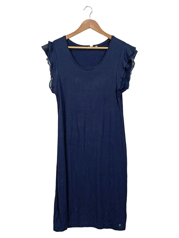 Damen Freizeitkleid Gr. S Blau Rüschenärmel Viskose
