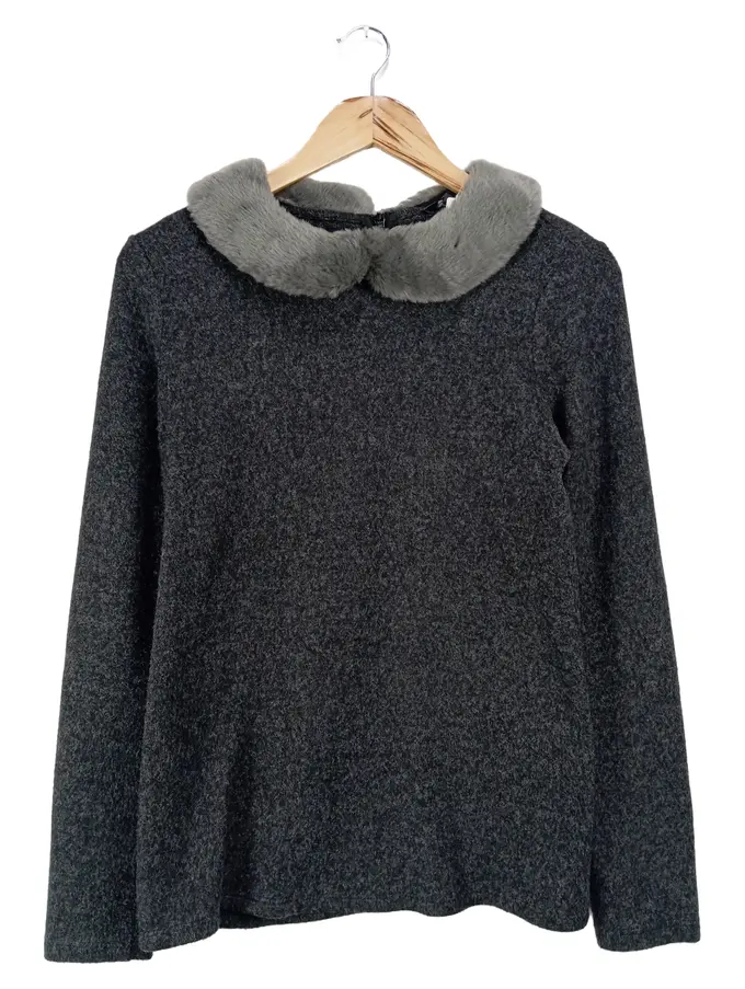 Damen Freizeitkleid Grau mit Fellkragen Gr. 40/L