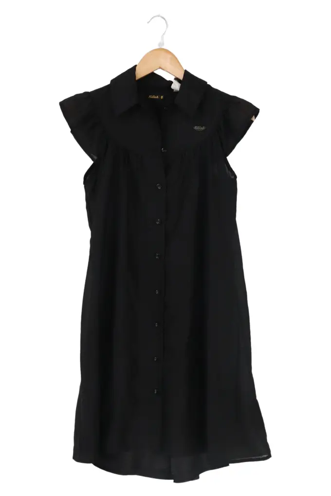 Damen Freizeitkleid Hemdblusenkleid Schwarz Gr. 38/M Rüschen Sommer