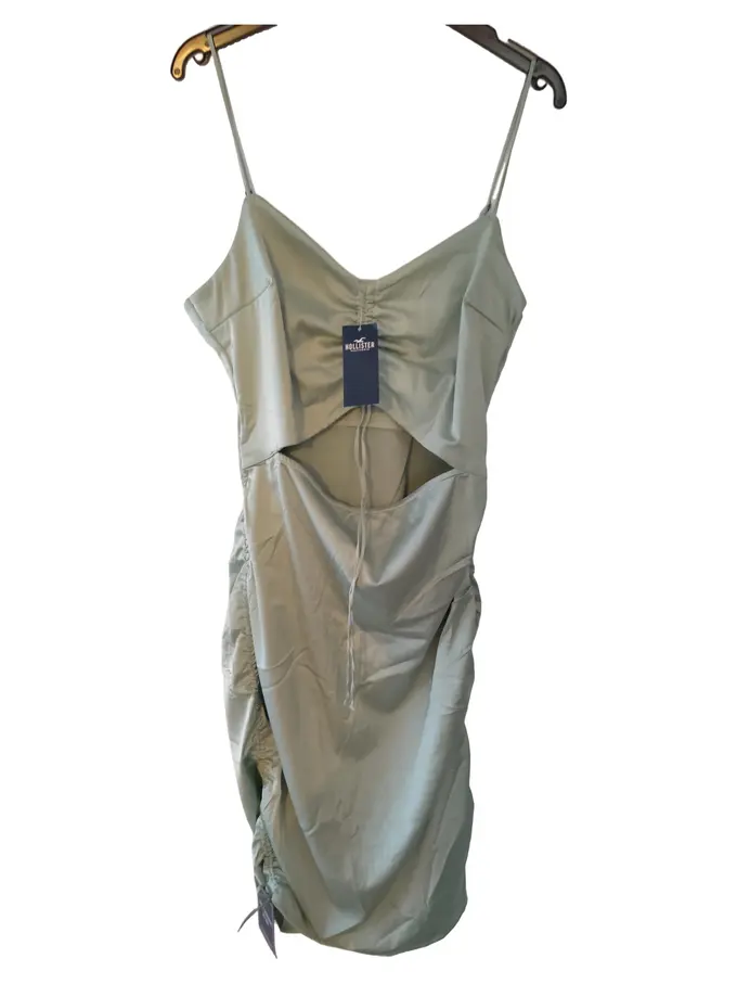 Damen Freizeitkleid M Grün Raffungen Cut-Outs Midikleid