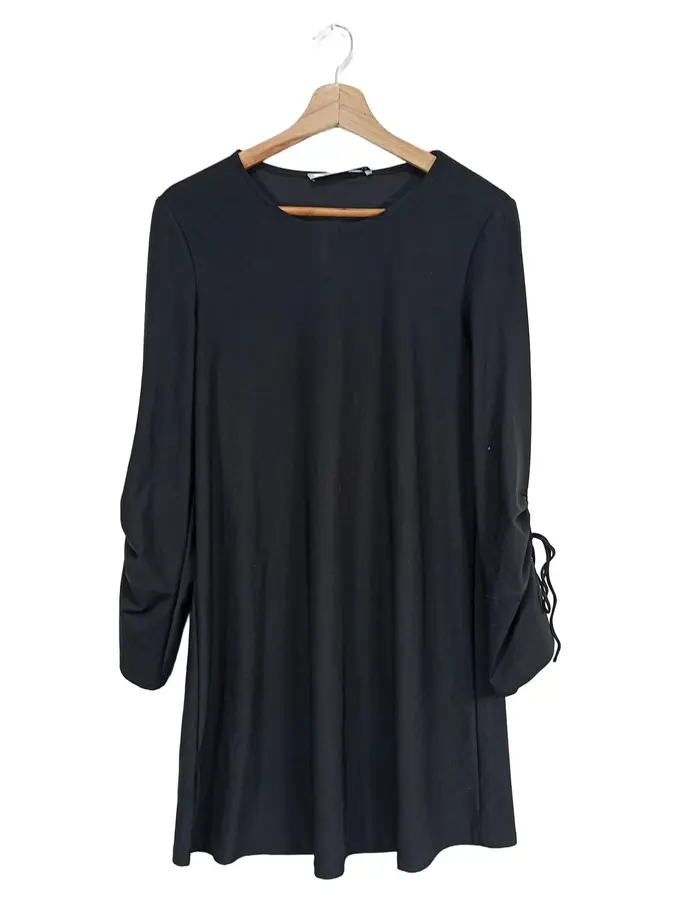 Damen Freizeitkleid Schwarz Gr. 36/S Casual Langarm