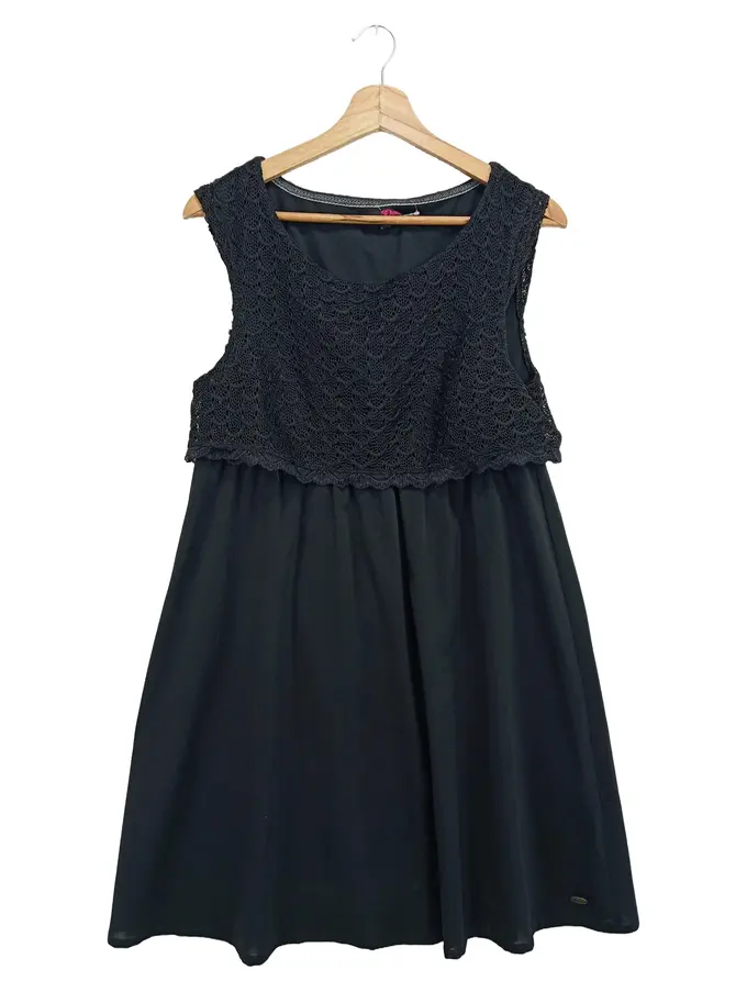 Damen Freizeitkleid Schwarz Gr. 38/M Elegant Vintage Lochmuster