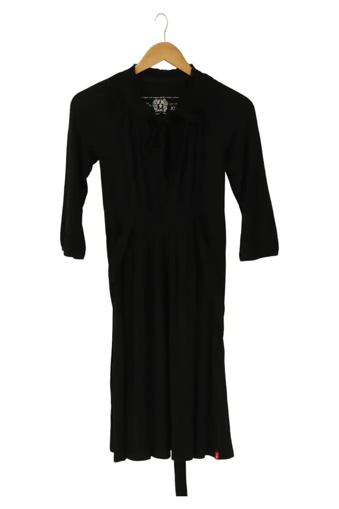 Damen Freizeitkleid Schwarz Gr. 42/XL Elegant Viskose Midikleid