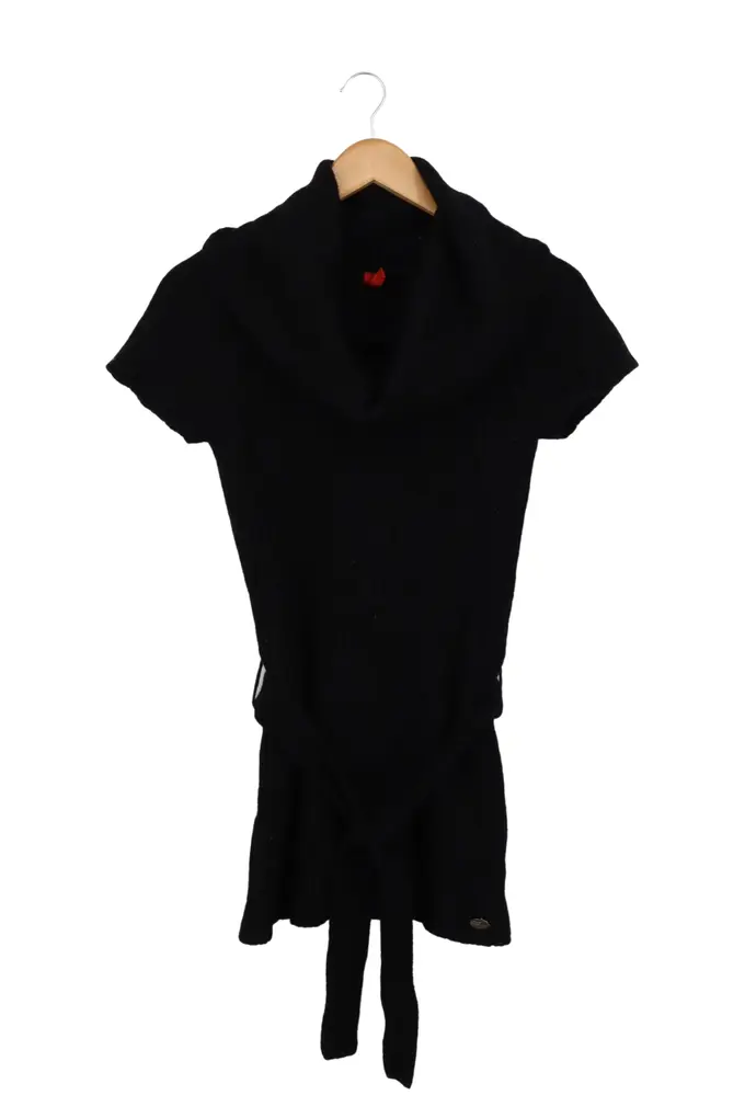 Damen Freizeitkleid Strickkleid Schwarz Gr. 32/XS Wasserfallausschnitt