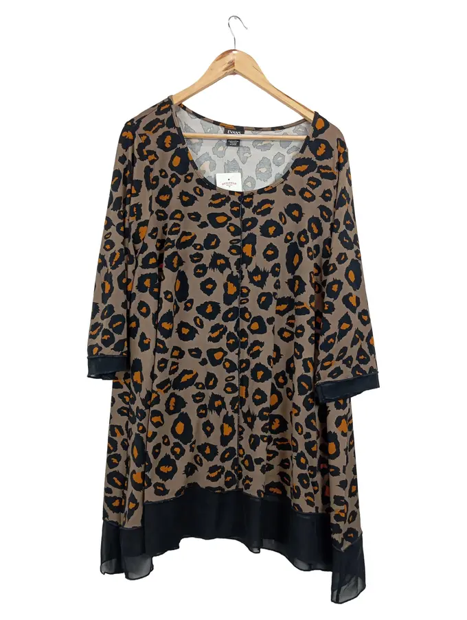 Damen Freizeitkleid XXL 44 Leopardenmuster Animal-Print Mehrfarbig