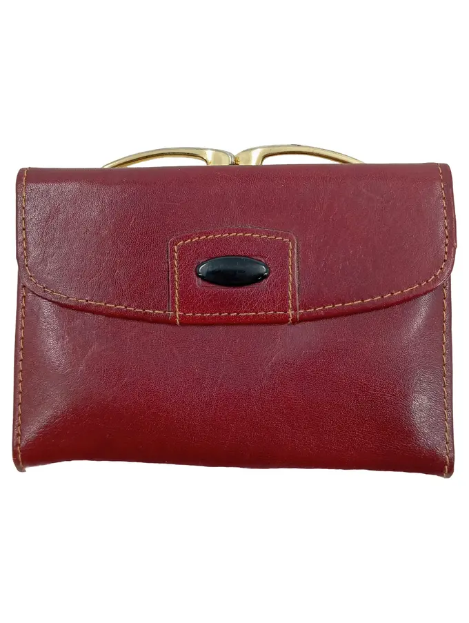 Damen Geldbörse Leder Bordeaux Portemonnaie Münzfach Bügelverschluss Klassisch