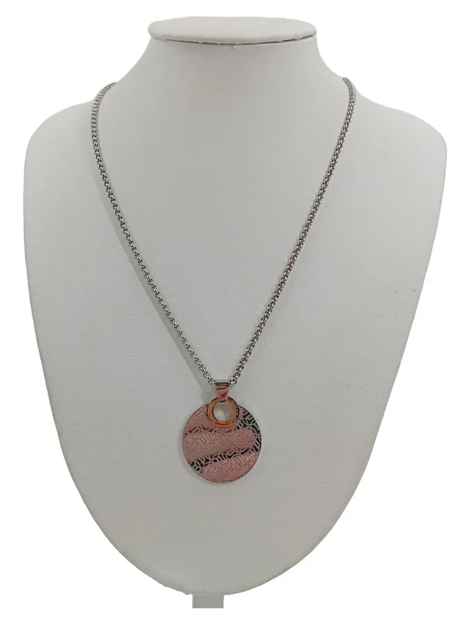 Damen Halskette Anhänger Edelstahl Silber Rosegold Rund Muster