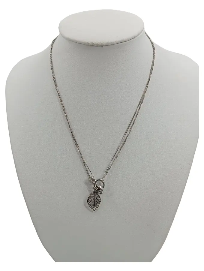 Damen Halskette Blatt Anhänger Silber 48cm Metall Minimalistisch