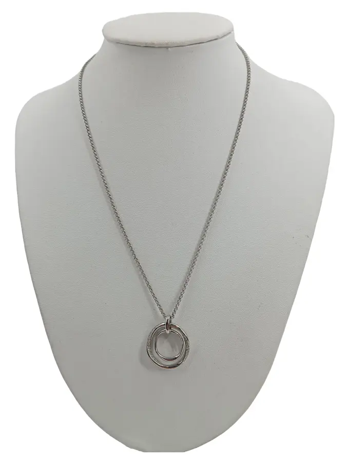 Damen Halskette Edelstahl Silber Doppelring Strass 48cm