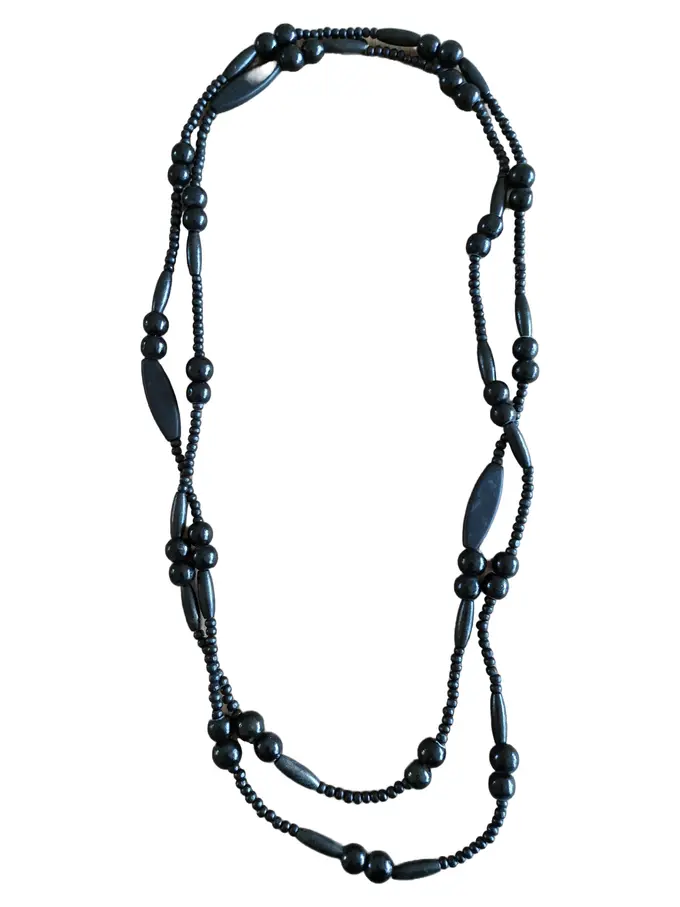 Damen Halskette Holz Perlen Schwarz Elegant 94 cm Alltag