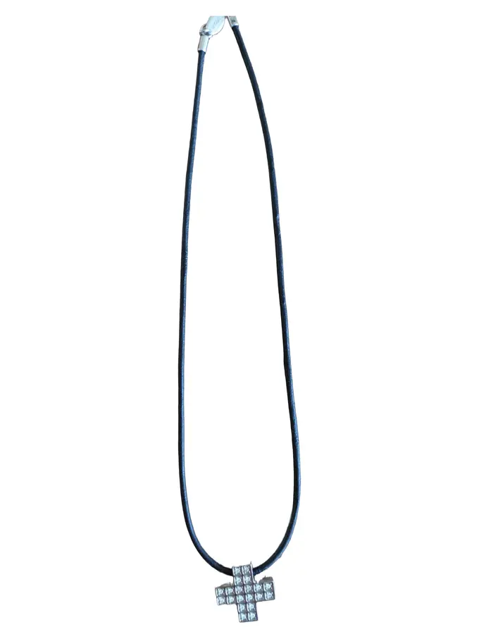 Damen Halskette Leder Kreuz Anhänger Schwarz Strass Alltag