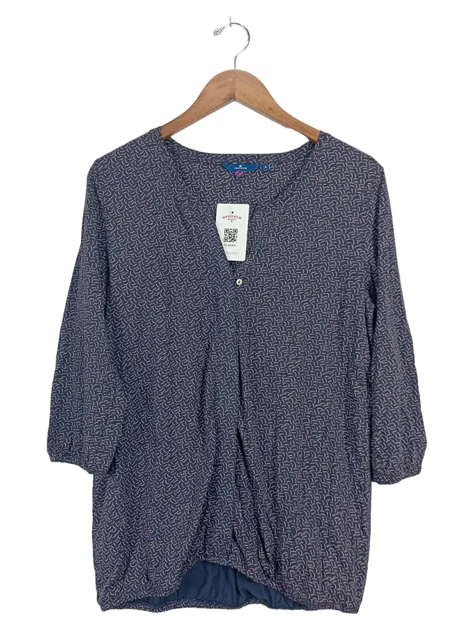 Damen Hemdbluse 3/4 Arm Blau Grafisch Gr. 40 L Freizeit