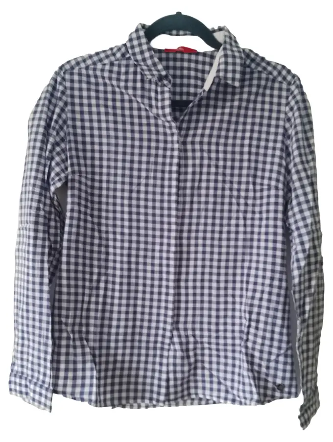 Damen Hemdbluse 36/S Blau Kariert Baumwolle Langarm