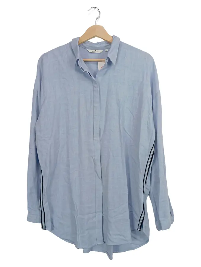 Damen Hemdbluse Blau Gr. 42/XL Langarm Baumwolle Casual Uni