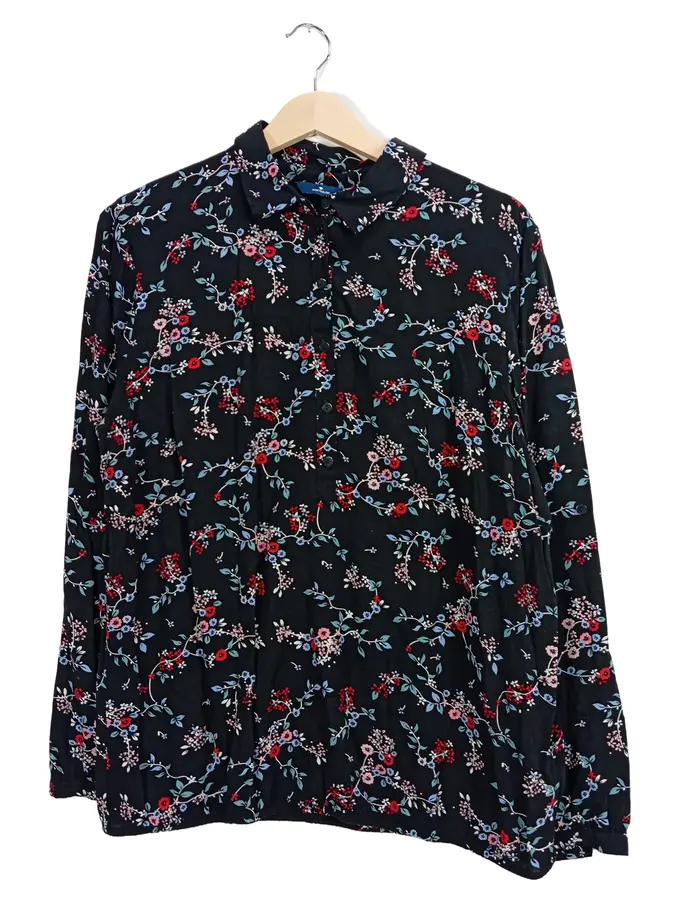 Damen Hemdbluse Blumenmuster Schwarz Gr. 42/XL Langarm
